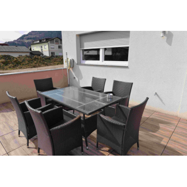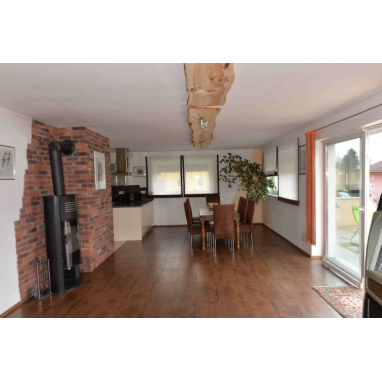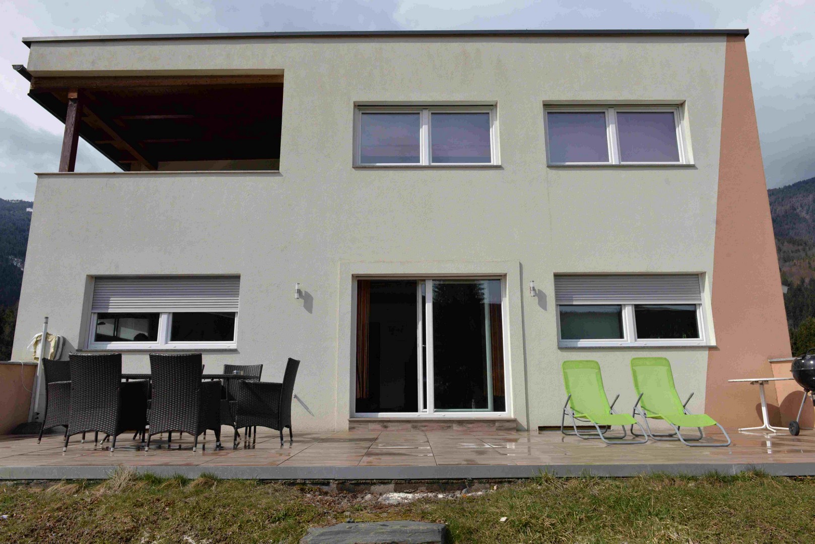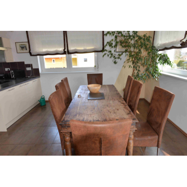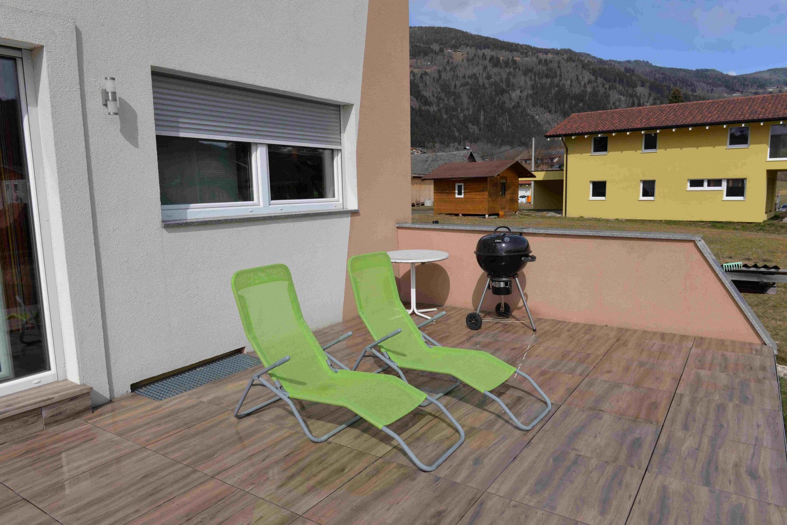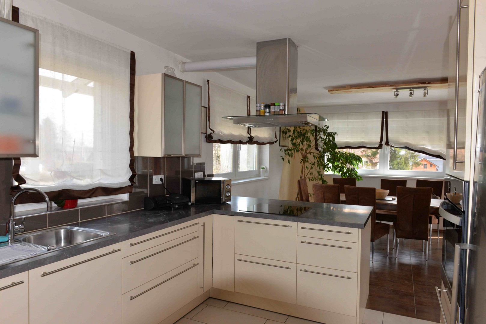 Vorraum mit WC, Küche mit Wohn- und Essraum ca. 75 m², Terrasse mit Grill und Liegen - teilweise Überdacht (neu seit April 2021) ca. 50 m².